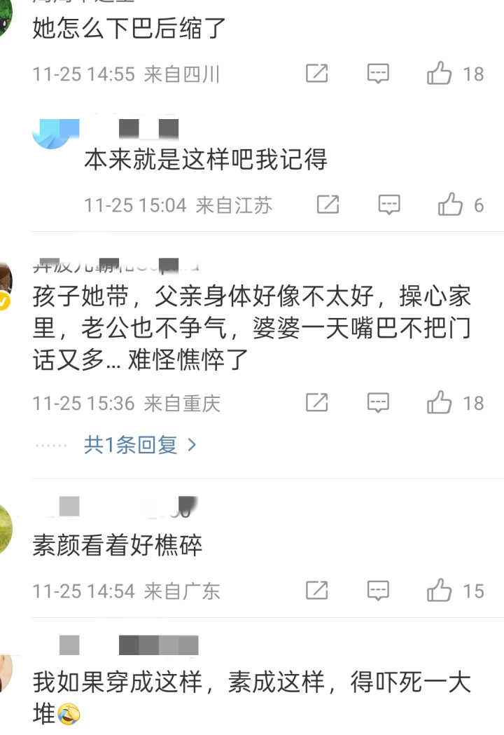 但这次露面,她瘦的脸上的肉都凹陷了进去,用面黄肌瘦来形容也不为过。