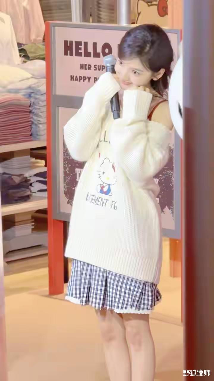 在此基础上,她的脸型又融入了心形脸(也叫倒三角脸)的特征。这主要体现在她收势急且尖俏的下巴上。虽然她的下巴不是那种非常尖锐的“V”形,但相较于传统鹅蛋脸更圆润的下巴,她的下巴线条收得更紧,显得非常精巧。这为她的甜美中加入了一丝精致和少女的灵动感。