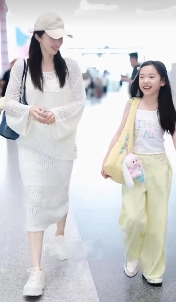 与母亲一起出现在机场时,小酒窝代替妈妈与粉丝互动,小姑娘十分健谈,逗得粉丝哈哈大笑。