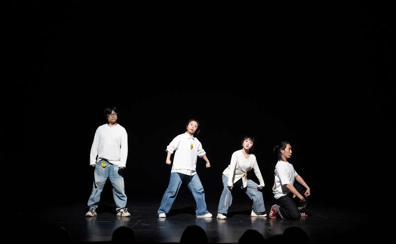 11月7日,在北京老舍剧院,喜剧青年们在舞台表演黑幕剧《当代动物进化图鉴》。受访者供图