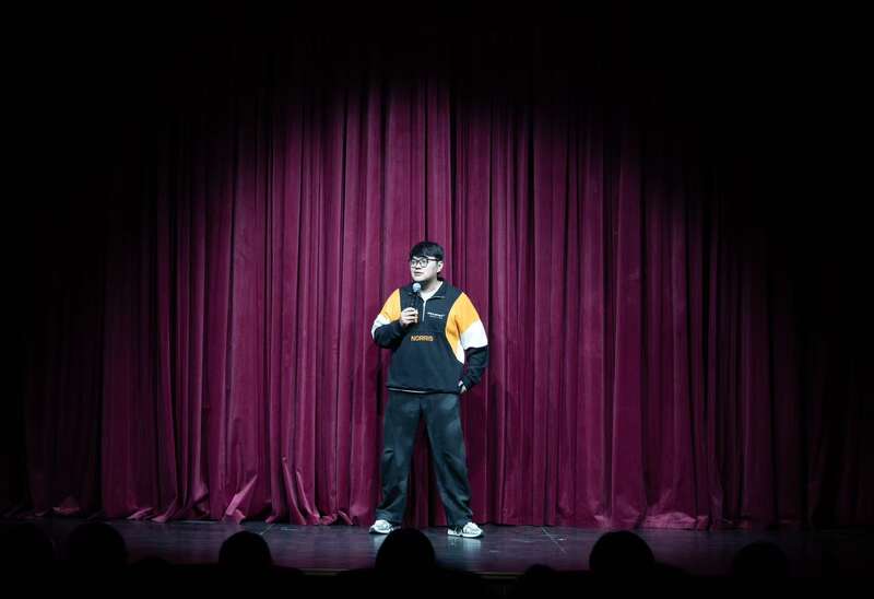 11月7日,在北京老舍剧院,脱口秀演员徐指导表演脱口秀。受访者供图