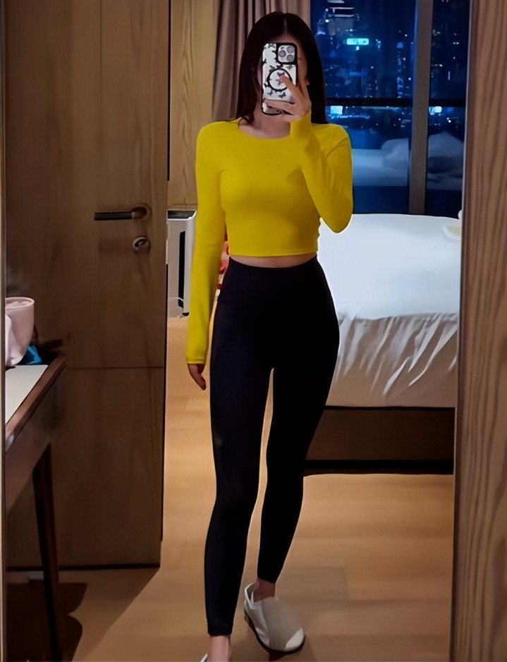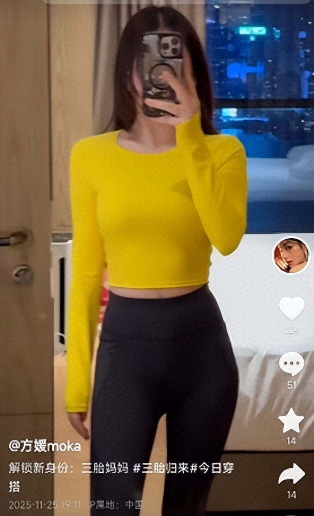 晒出的画面里,方媛全程都没有露脸,她用手机对镜自拍,小脸蛋儿被手机遮挡的严严实实。方媛披着长发,身穿修身款式黄色露腰上衣搭配紧身运动长裤,纤瘦苗条好身材一览无余。众所周知,方媛在10月22日官宣生下三胎女儿,如今也才过去一个月,但她竟然已经完全恢复到从前了,这小细腰、大长腿,哪里像是刚生下三胎一个月的样子啊。由此可见,方媛在恢复身材上真的是下足了功夫!