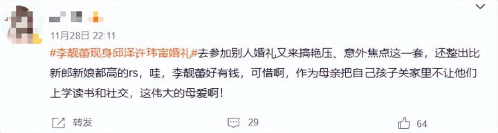 不少网友调侃,李靓蕾是来给闺蜜许玮甯送祝福的,还是来抢风头的?