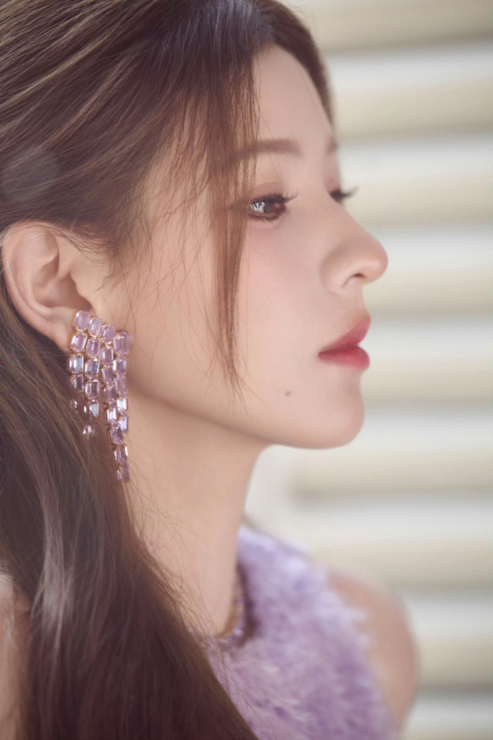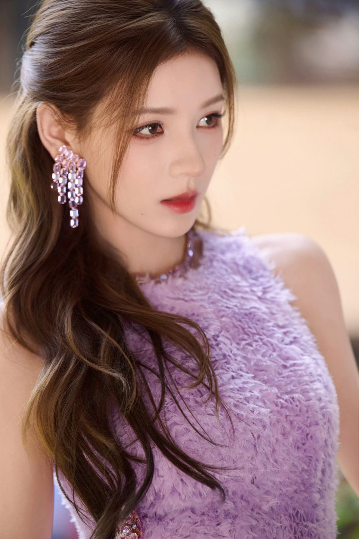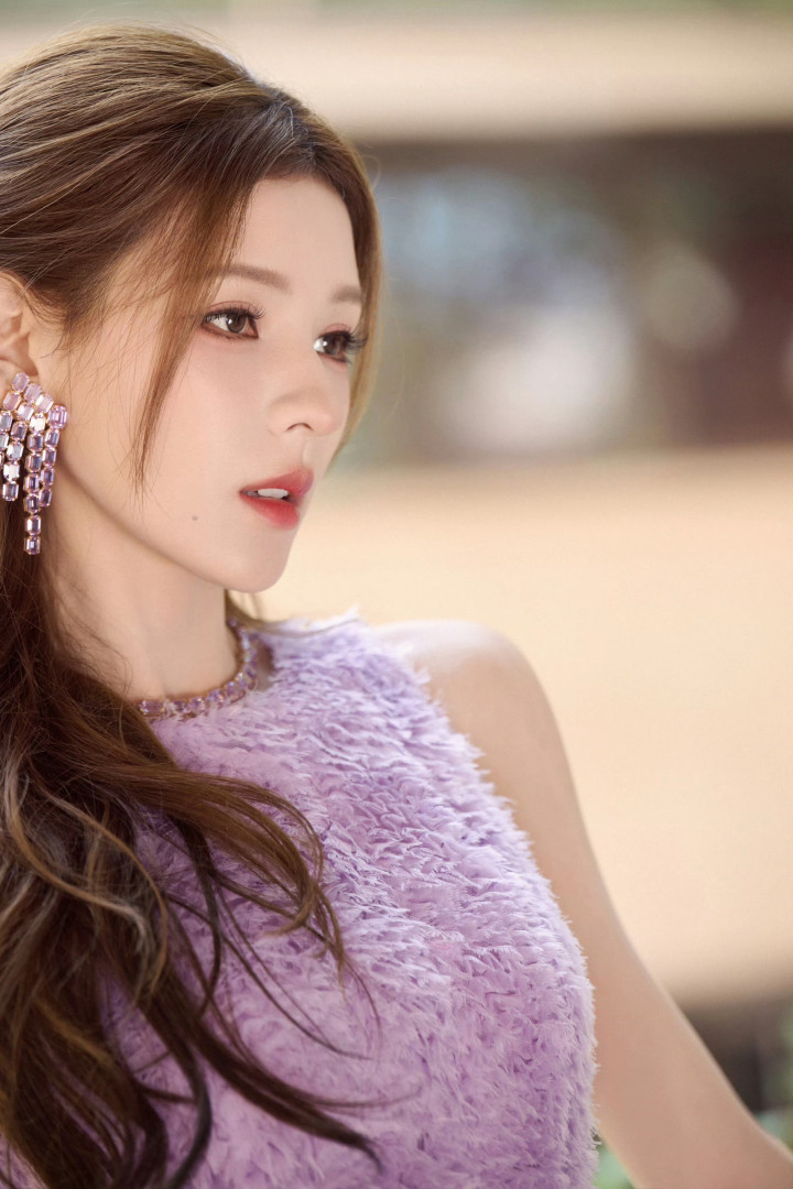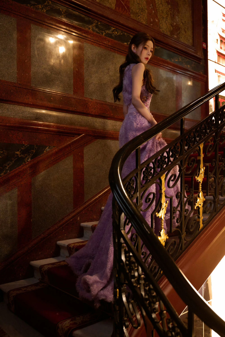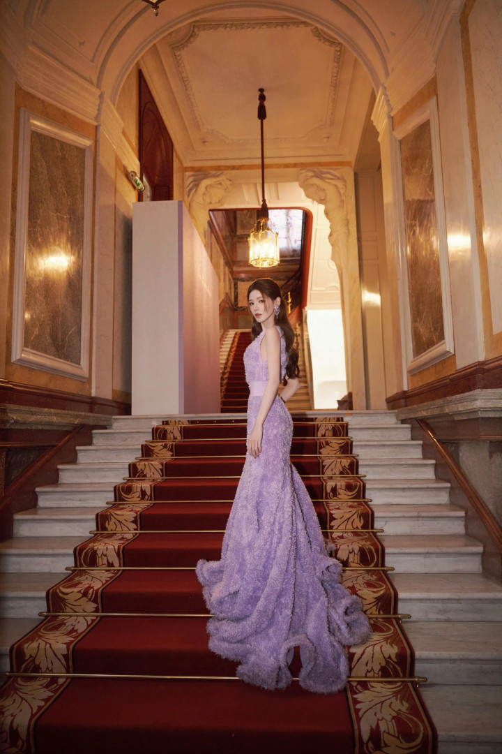 张予曦巴黎时装周造型 身穿一袭梦幻紫色长裙冷艳高贵