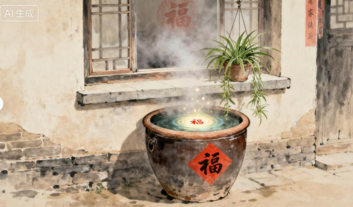后来,清风镇的人都知道了 “水为财,缸为库” 的说法,家家户户都会在院子的东南角、厨房的门口左侧和正屋的窗台下放一口水缸,注满清水,祈求招财纳福。
