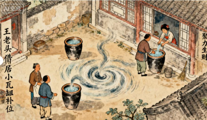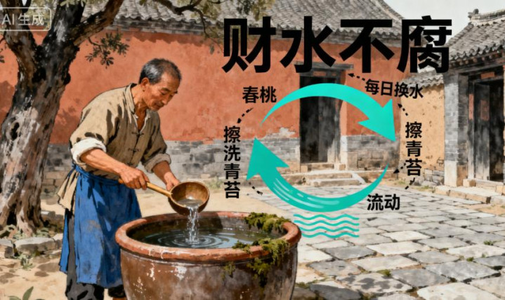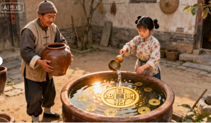 王老实赶紧问:“道长,您快说说,是什么法子?只要能让家里的日子好过点,我什么都愿意做。”老道长指了指不远处的一口水缸,说:“施主,你看那水缸。水为财,缸为库,这水缸要是放对了地方,就能聚财纳福,让家里的日子越过越红火。我告诉你三个地方,你回去把水缸放在这些地方,用不了多久,就能看到效果。”