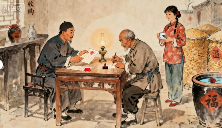 自从把水缸放在这三个地方后,王老实家的日子越过越红火。第二年,他又承包了几亩地,种上了棉花和大豆,收成也很好。他还在镇上开了个小铺子,卖自己种的粮食和棉花,生意很兴隆。春桃也不再愁眉苦脸了,她脸上总是带着笑容,把家里打理得井井有条。孩子们也能吃饱穿暖了,还能去镇上的私塾读书。