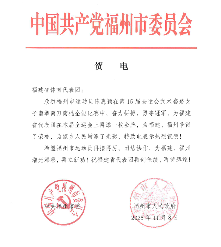 全运会快报|拳刀棍样样精!福州运动员陈惠颖全运会夺金